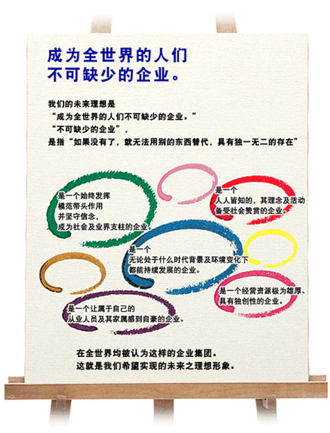 要把我们集团不断地建设成这样一个企业:能够不安于维持现状,时刻关注市场的风云变化,并积极勇敢地挑战新事物,进行革新。