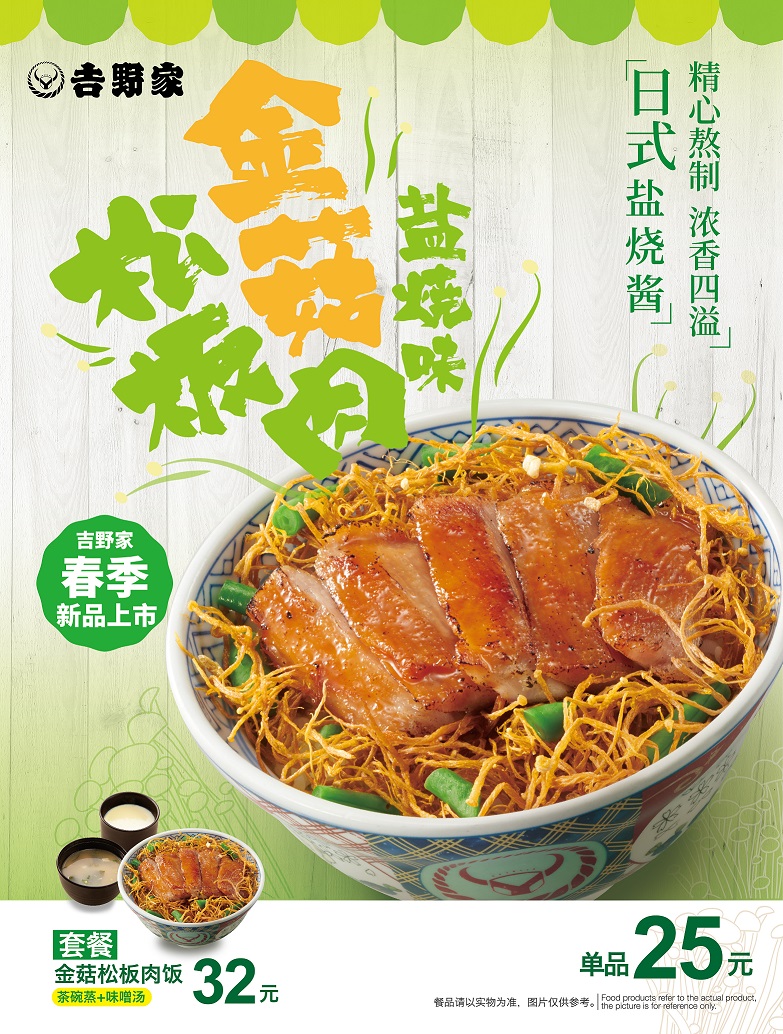 吉野家春季新品-金菇松板肉饭上市!